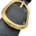 This Gucci Demetra pet harness in black is a premier luxury accessory for small dogs, combining high-fashion aesthetics with a commitment to sustainable materials. Crafted from Demetra, Gucci's innovative animal-free material, this harness offers the supple feel and durability of traditional leather while being composed of 70% vegetable-based raw materials. The sleek black design is elevated by high-polish gold-toned hardware, including the signature Interlocking GG accent at the buckle.