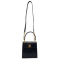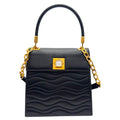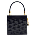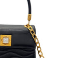 LALIQUE Vintage Wavy Quilted Handle Bag with Crystal Clasp - Black